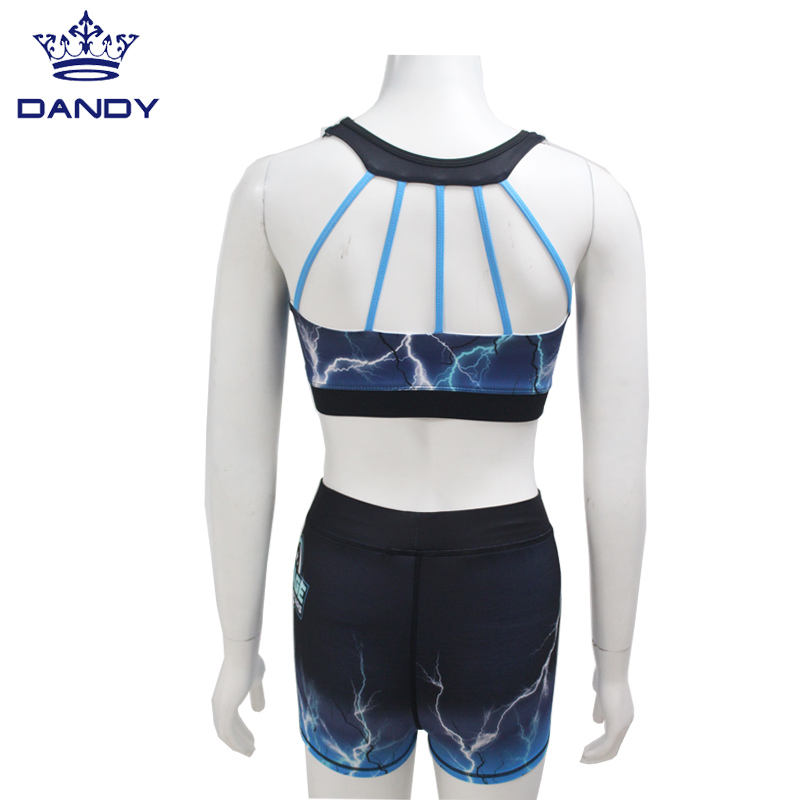 Abbigliamento sportivo su misura sublimazione schienale Cheerleading corto e reggiseno