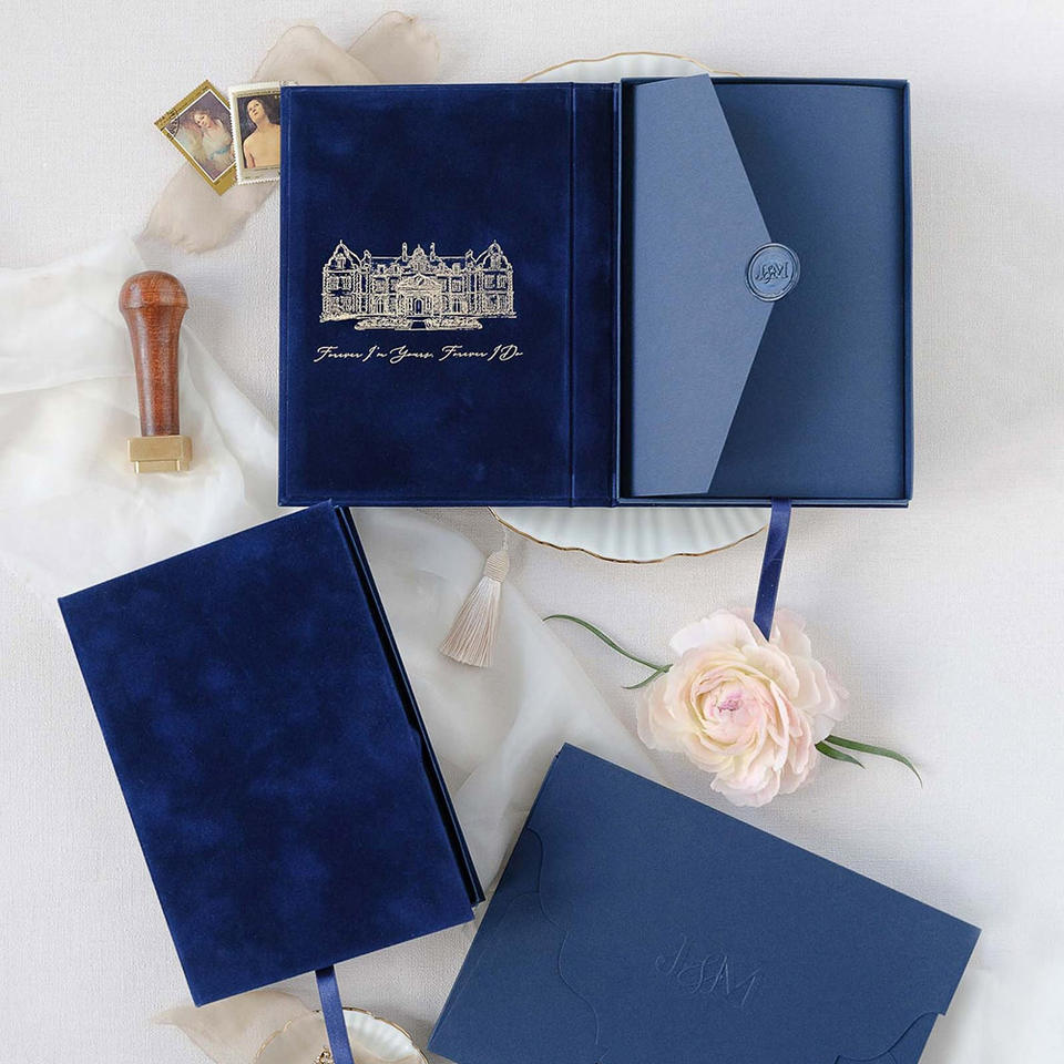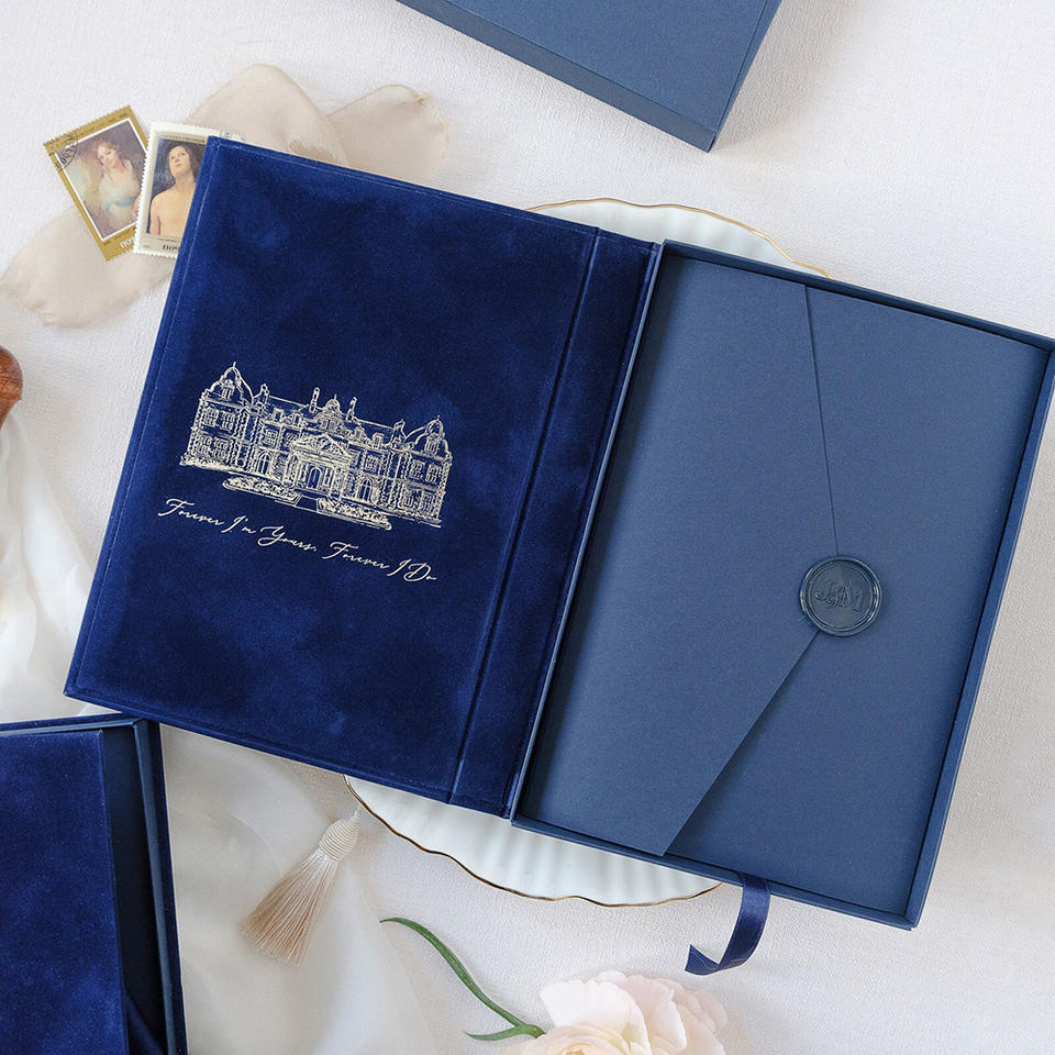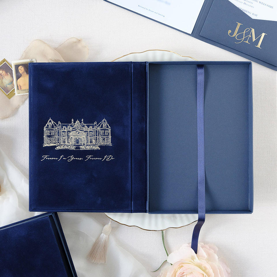 Cofanetto Regalo Magnetico Personalizzato di Lusso in Velluto Rigido per Foto, Pacchetto Nozze per Ricordi dell'Album, Coordinato per Partecipazioni di Nozze con Nastro