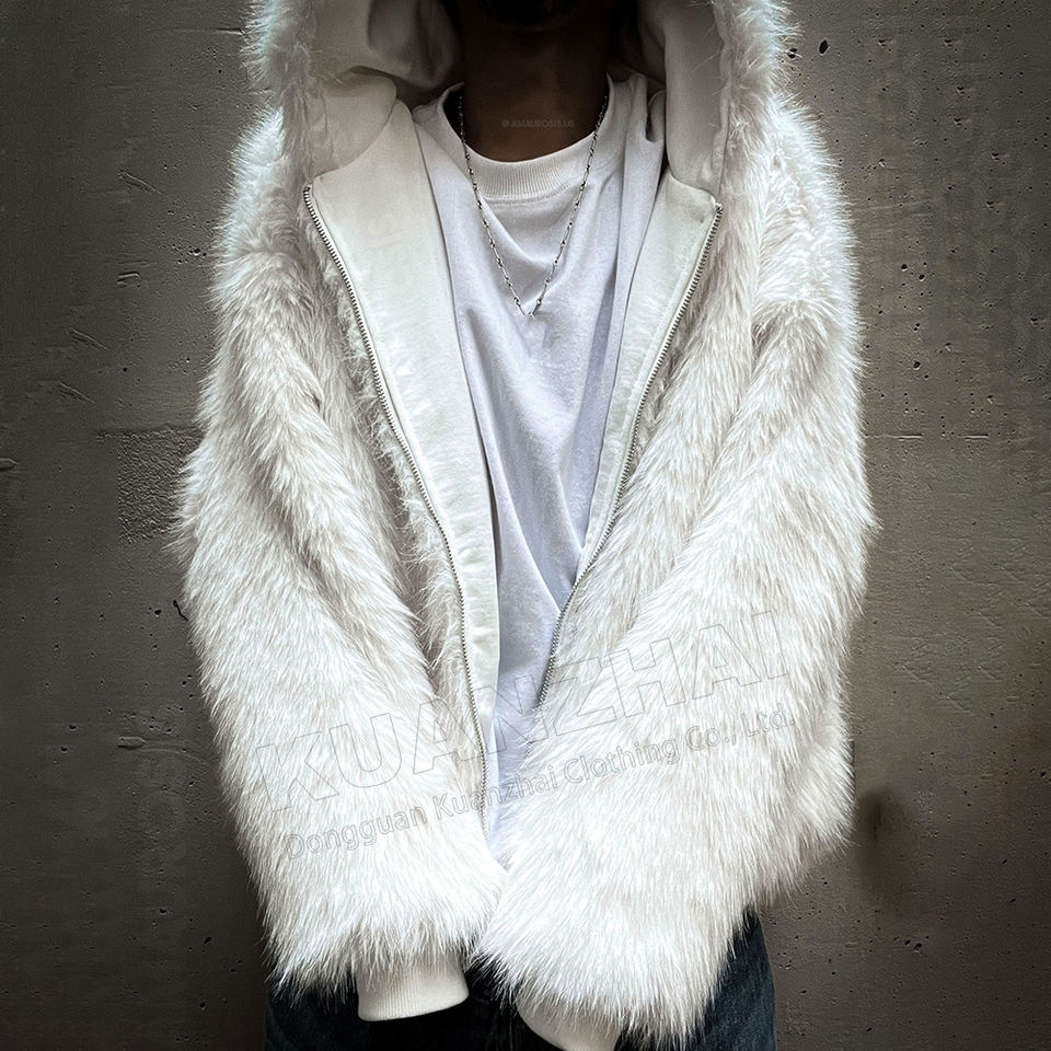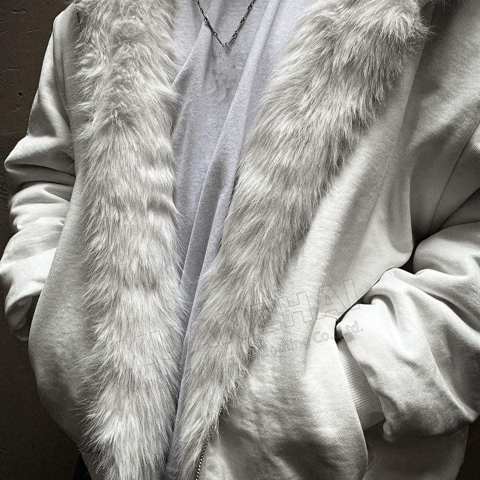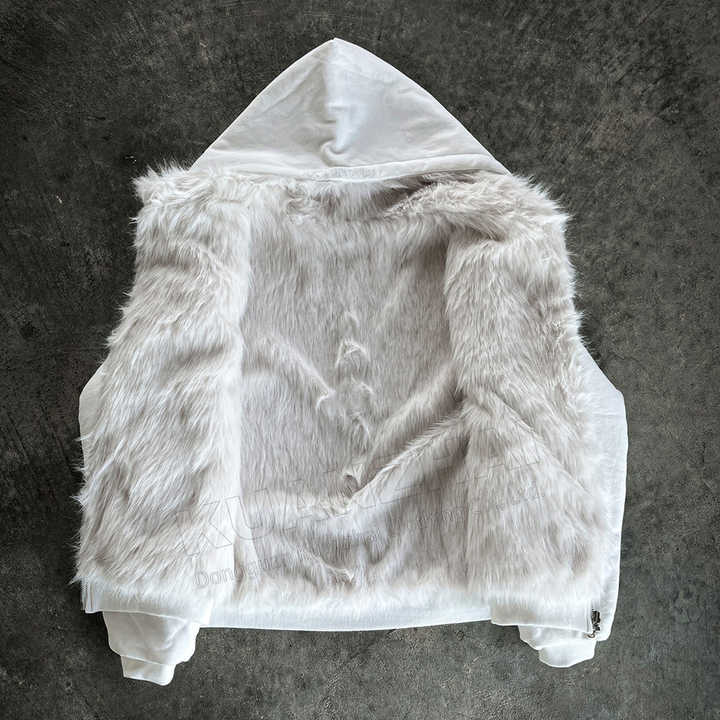 Felpa con Cappuccio e Zip Personalizzata dal Produttore, Reversibile a Doppio Strato con Pelliccia, Giacca Soffice Cropped dalla Vestibilità Boxy