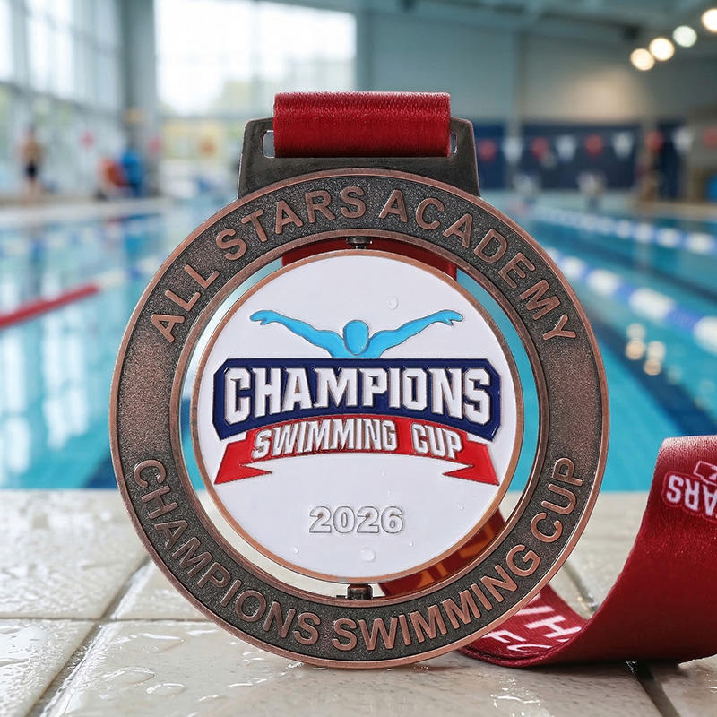 Medaglia Personalizzata in Lega di Zinco Smaltata con Design Nuotatore, Medaglia Girevole in Rame per Accademie, Medaglie Sportive in Metallo per Eventi di Nuoto per Bambini e Ragazzi