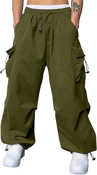 Pantaloni da uomo personalizzati in Nylon ad asciugatura rapida pantaloni americani con paracadute a vita alta larghi pantaloni Cargo larghi