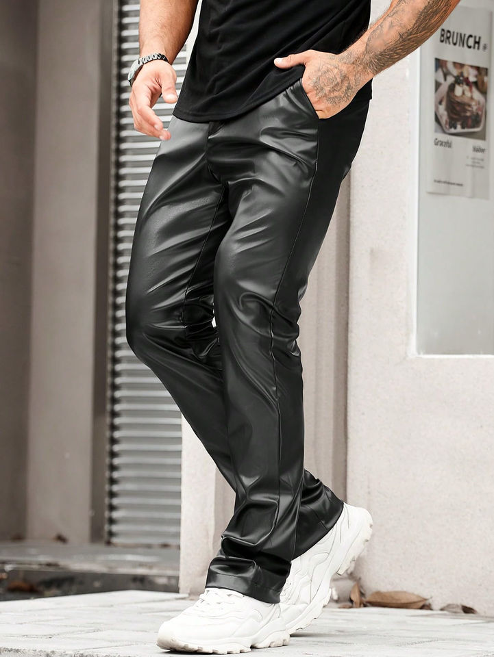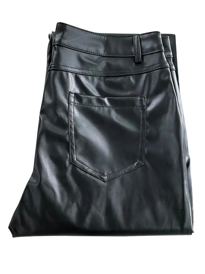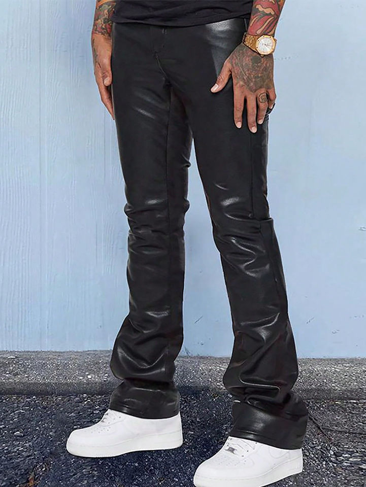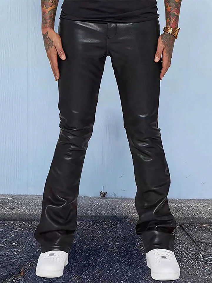 Pantaloni da Uomo Personalizzati in Ecopelle Stile Ciclista, Pantaloni in PU Tinta Unita Stile Western, Pantaloni alla Moda Slim-Fit a Gamba Dritta