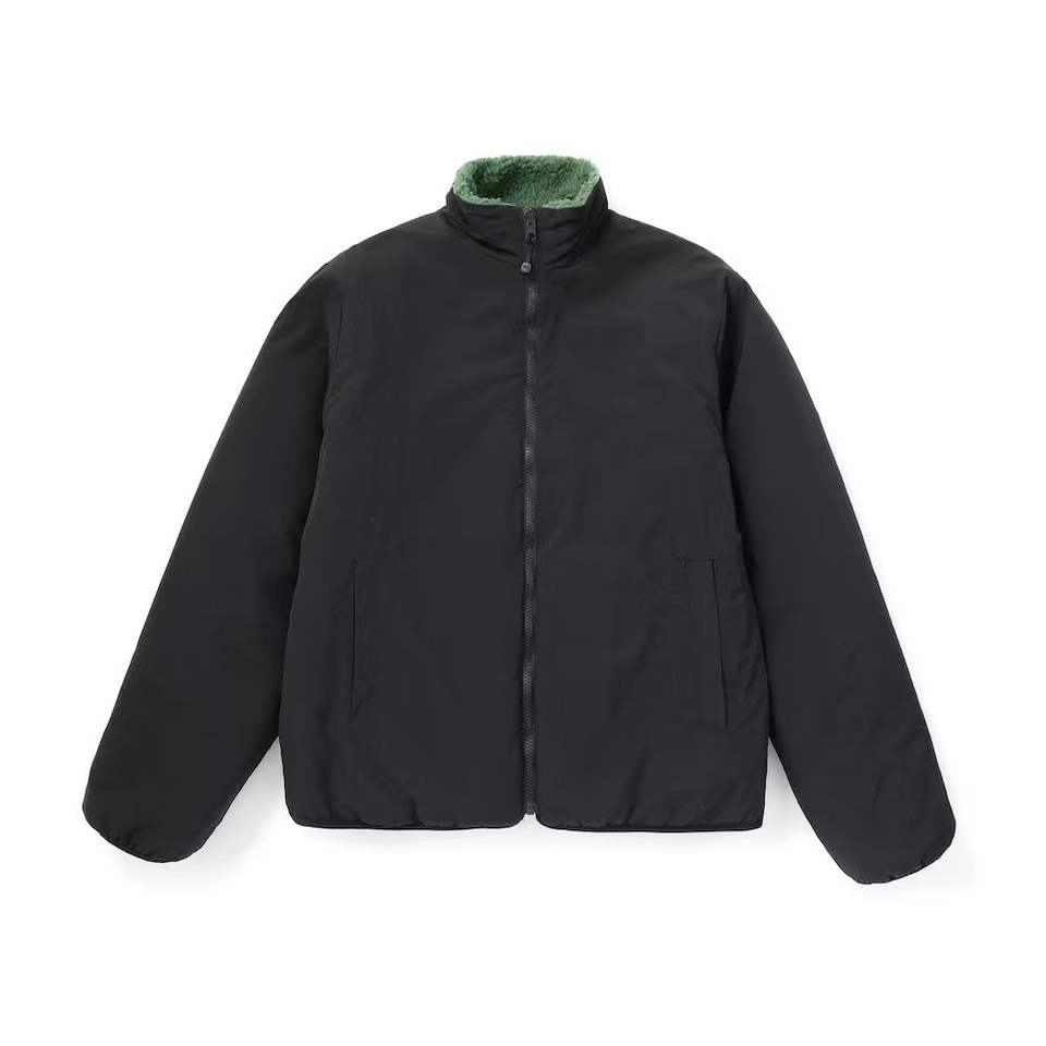 Giacca in pile reversibile alla moda da uomo personalizzata con colletto rialzato con cerniera frontale a spalla, adatta per l'abbigliamento invernale da esterno