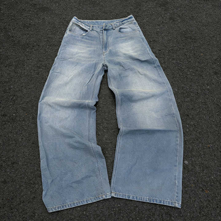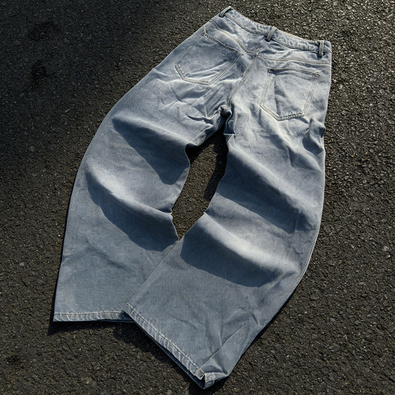 Jeans Vintage Y2K Personalizzati da Uomo - Gamba Dritta Effetto Consumato Vestibilità Regolare Blu Nero per Streetwear Autunnale