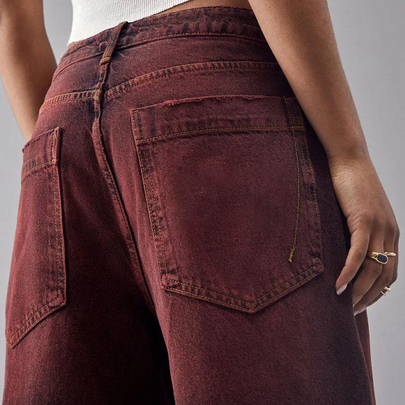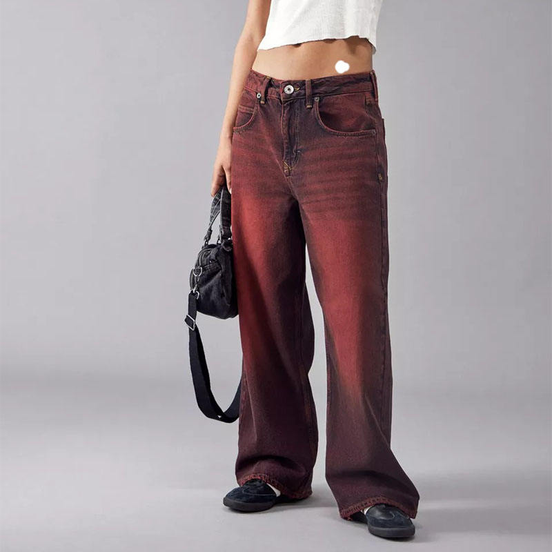 Nuovi Jeans rossi da uomo personalizzati pantaloni Jeans elasticizzati in Denim elasticizzati dipinti BDG produttori di Jeans larghi Jaya colorati bordeaux