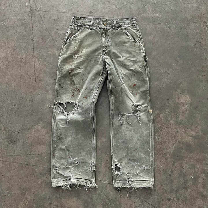 DongGuan XinYiCheng Garment Co., Ltd. Pantaloni carpenter da uomo vintage in denim slavato a doppio ginocchio stile cargo strappati