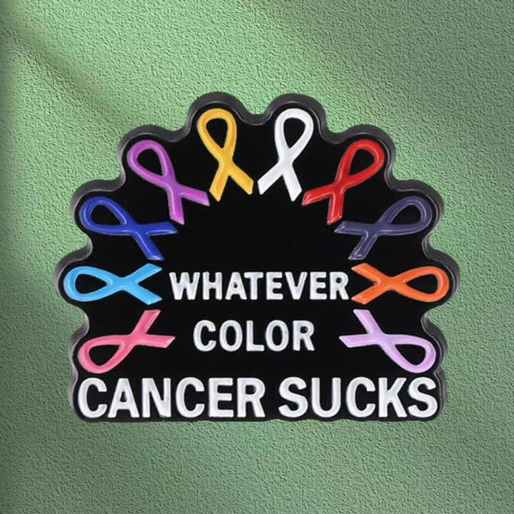 Spilla in metallo smaltato personalizzata, Fabbrica professionale con oltre 20 anni di esperienza, Distintivo personalizzato a forma di nastro per la consapevolezza sul cancro con la scritta "Quanto che tu abbia il cancro, lo odi"