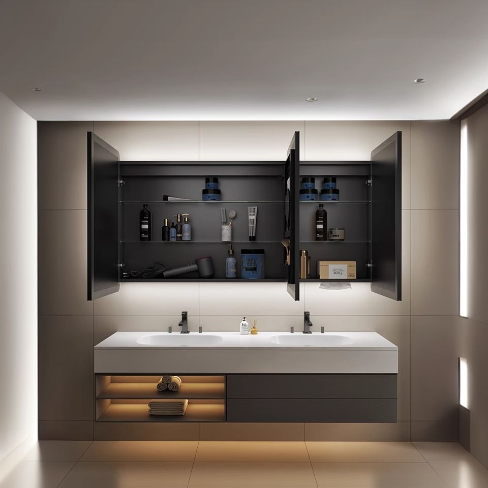 Custom moderno 2 porte LED luci da bagno Anti-nebbia caratteristica specchio resistente all'acqua armadietto dei medicinali per alberghi ville appartamenti