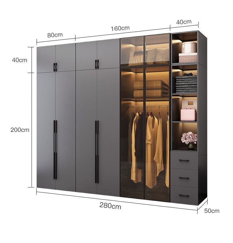 Custom moderna camera da letto in vetro armadio vestiti guardaroba mobili di stoccaggio per camera da letto
