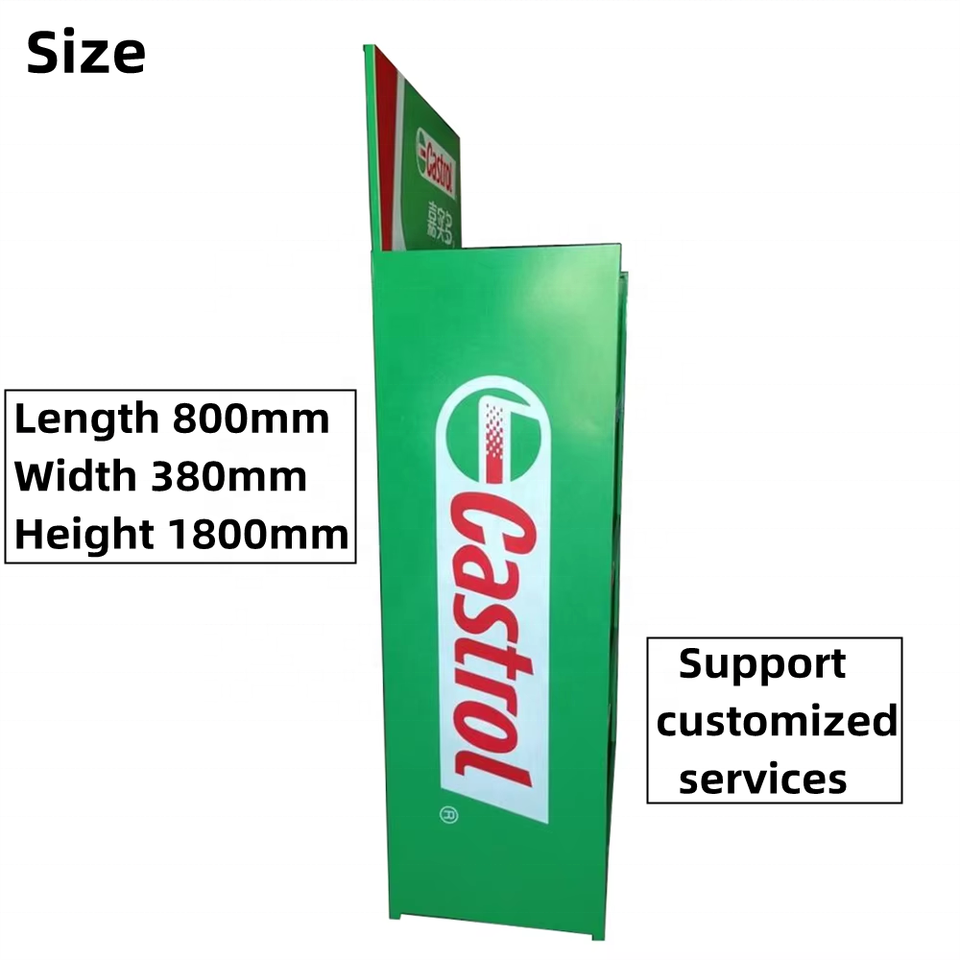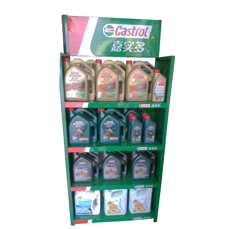 Espositore Moderno in Metallo Personalizzato per Bottiglie di Olio Motore Castrol, Accessori e Ricambi Auto per Negozi
