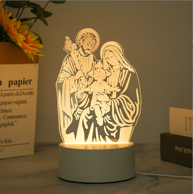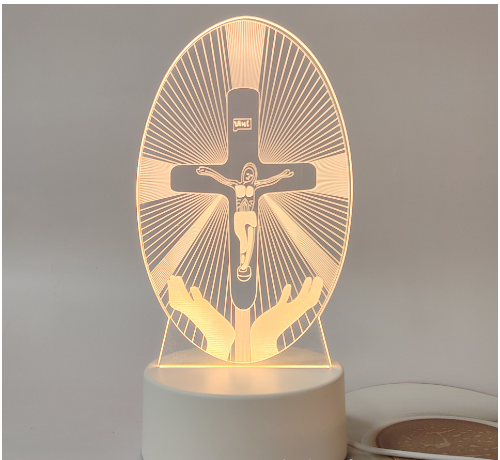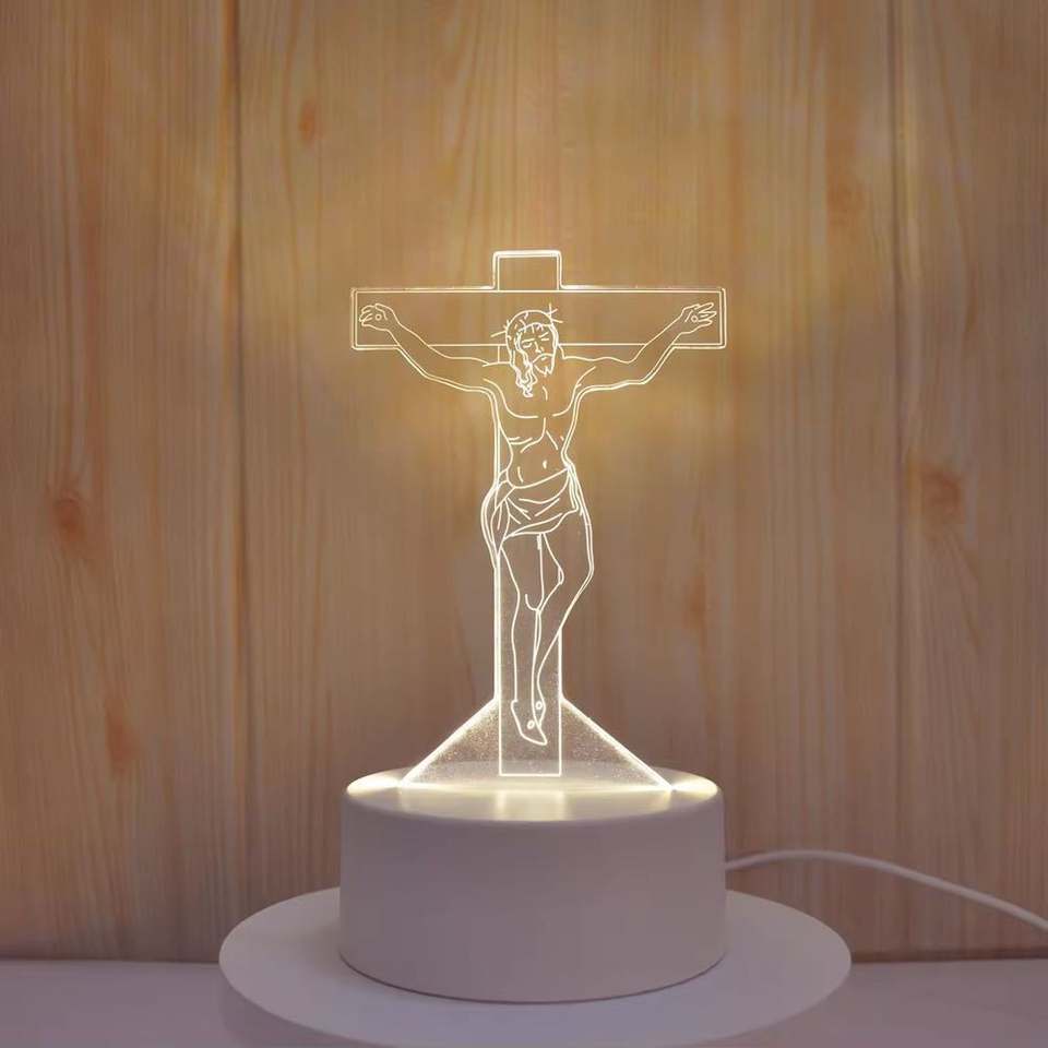 Luce Notturna Personalizzata con Illusione Ottica 3D di Gesù, Croce dal Design Cattolico Moderno Pop a Tema Religioso con Maria e Cristo