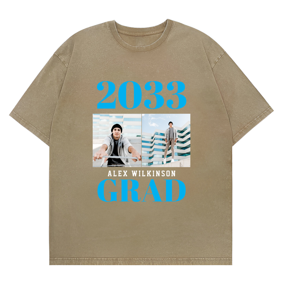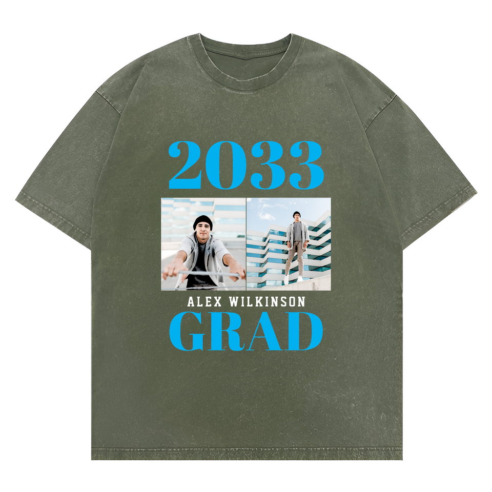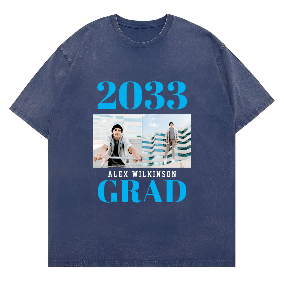 Tipografia moderna personalizzata 2 foto di laurea maschile per Polo t-shirt in blu