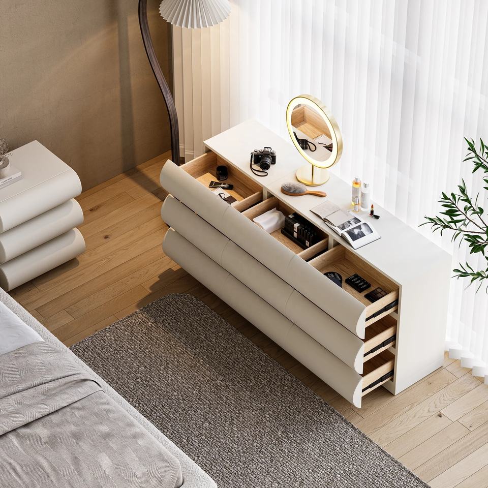 Custom Modern White Chest of Drawer with Wrapped in Faux Leather Bumping Design Sideboard for Bedroom Living Room Entrance