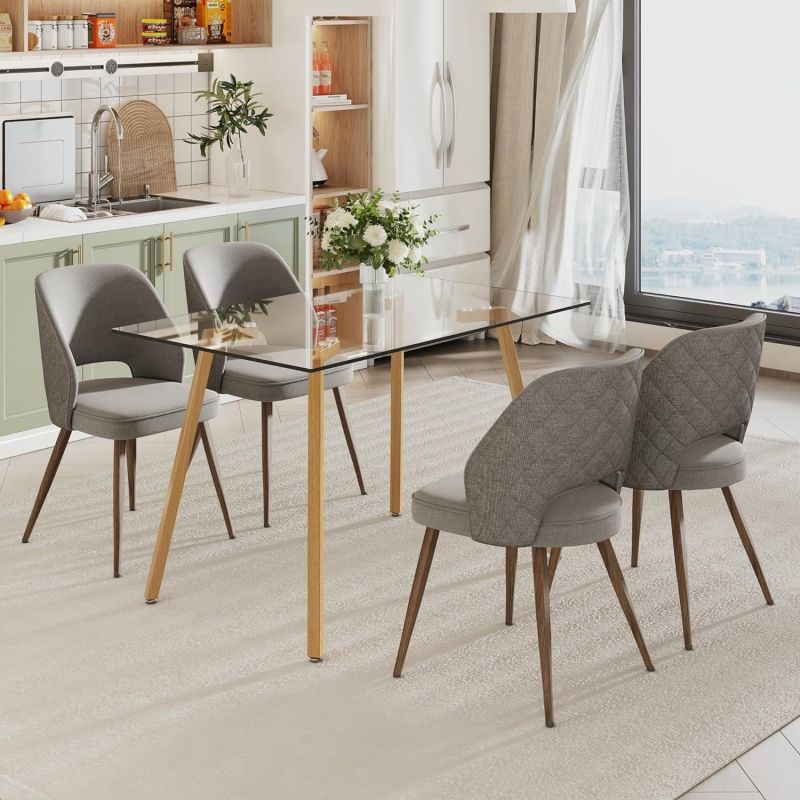 Custom Modern and Simple Small-sized Dining Room Rectangular Glass Table with Wood Legs Rental House Tables Coffee Dining Tables