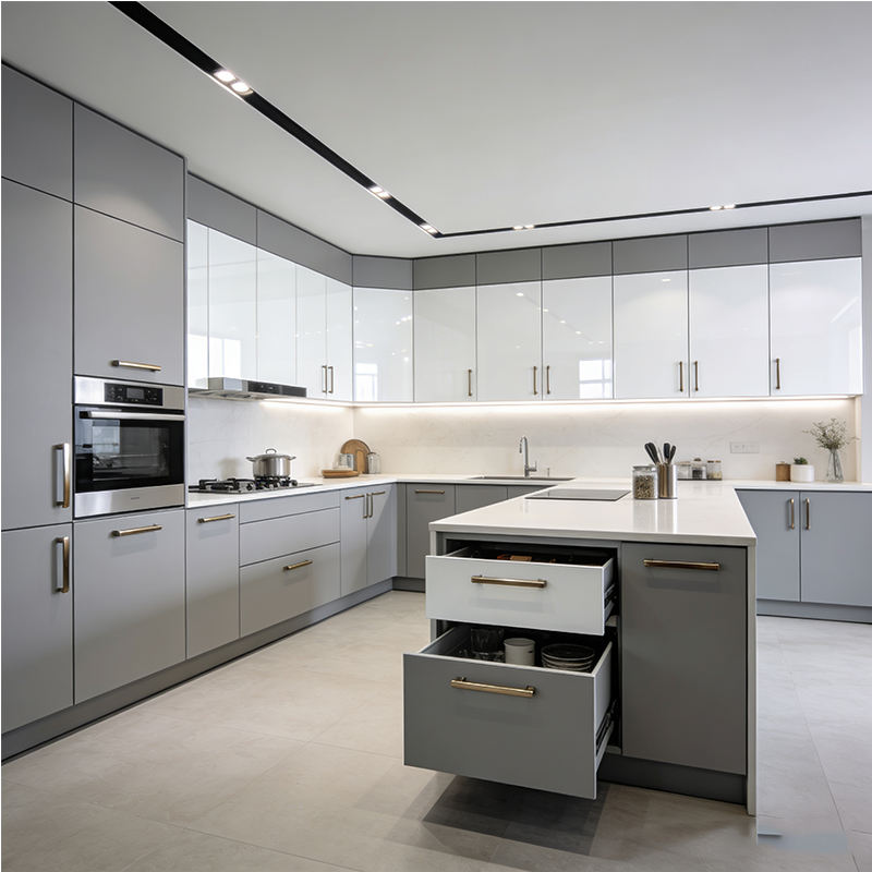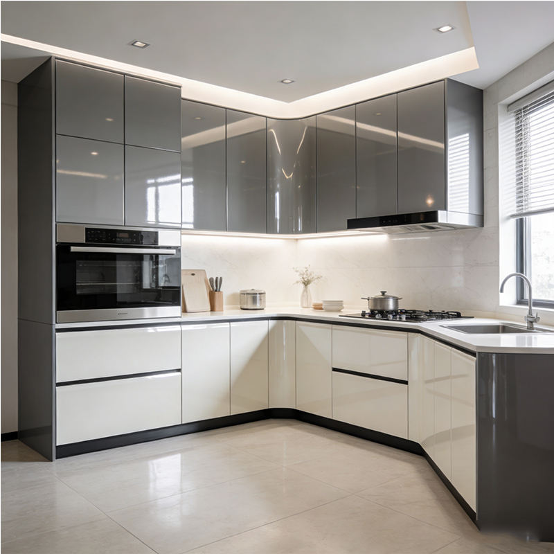Mobile da Cucina Modulare Personalizzato in Truciolato, Armadietto da Parete Moderno Laccato Lucido, Arredamento per la Casa
