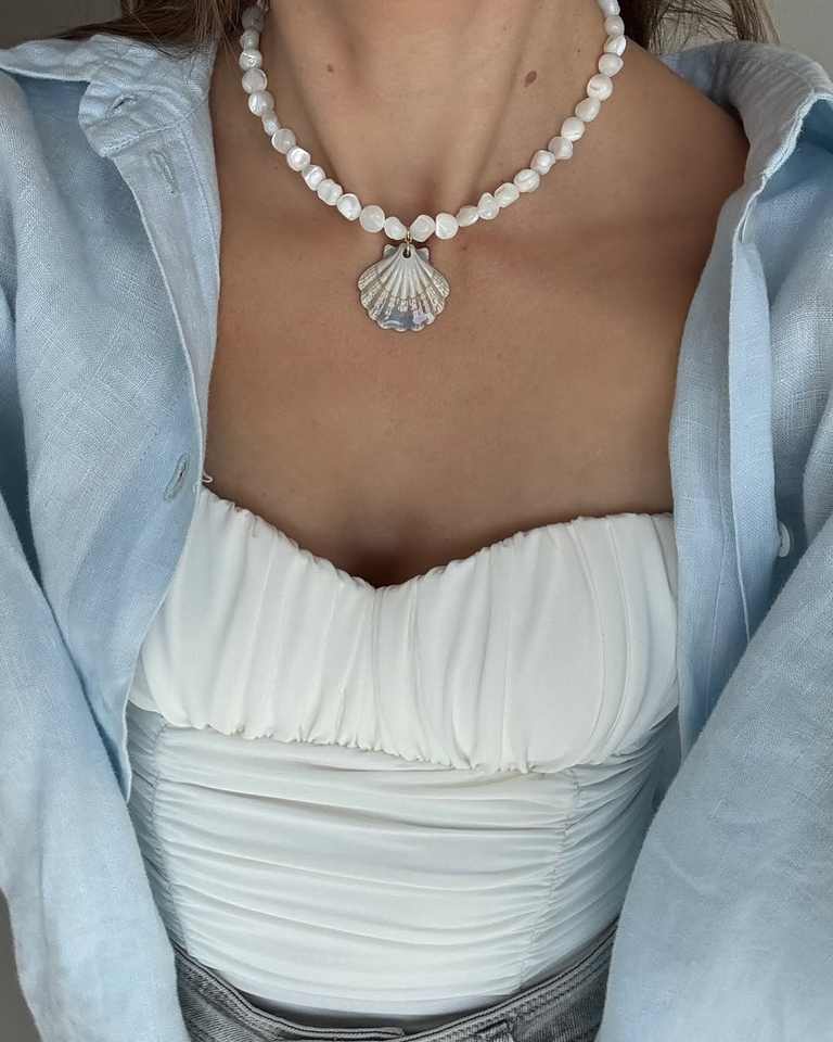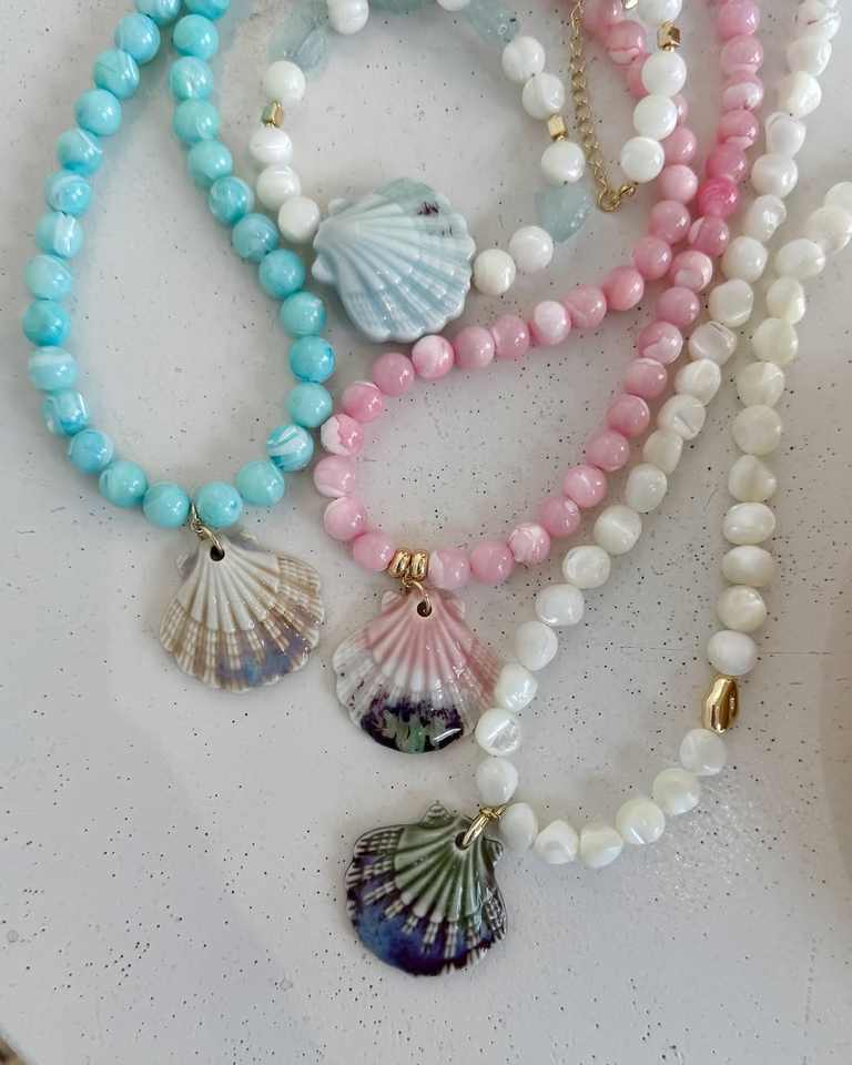 Collana girocollo personalizzata con perle di madreperla e perline in ceramica colorate, gioielli estivi da spiaggia all'ingrosso