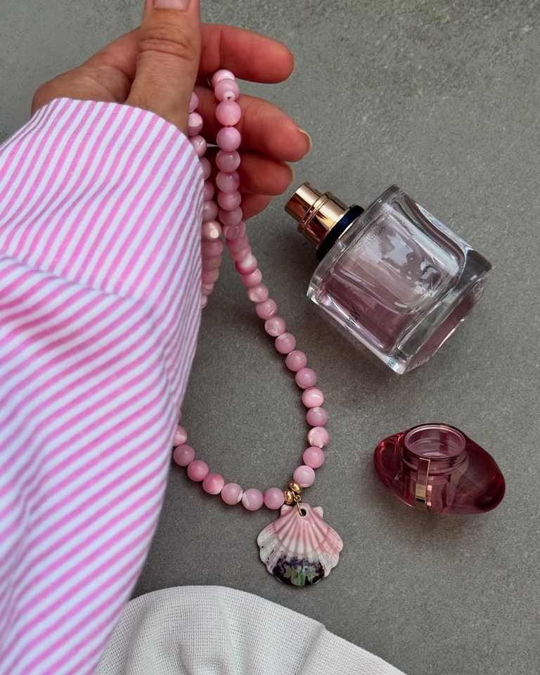 Collana Girocollo con Perline di Madreperla a Forma di Rondelle