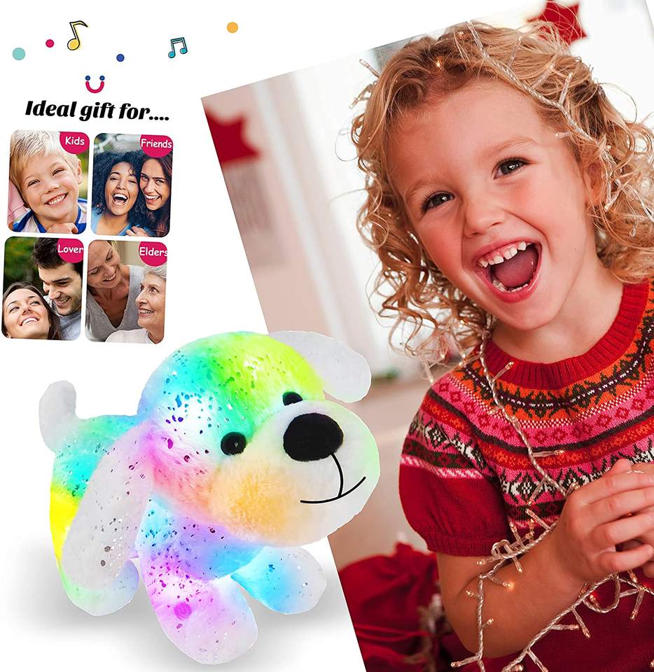 Musica personalizzata illumina il cane bianco farcito cucciolo scintillante morbido peluche LED che canta animali di peluche con luci notturne colorate