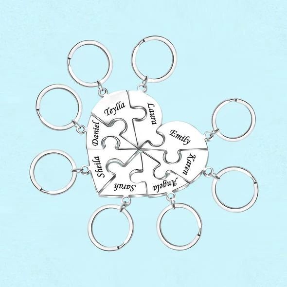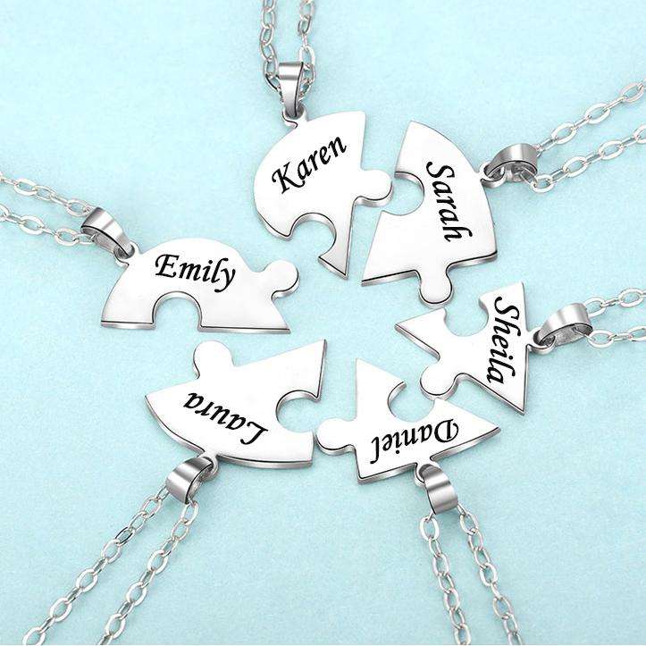 Collana e Portachiavi Puzzle in Acciaio Inox con Nome Personalizzato Inciso, Ciondolo Personalizzato per Migliori Amici, Famiglia, Ragazzi e Ragazze