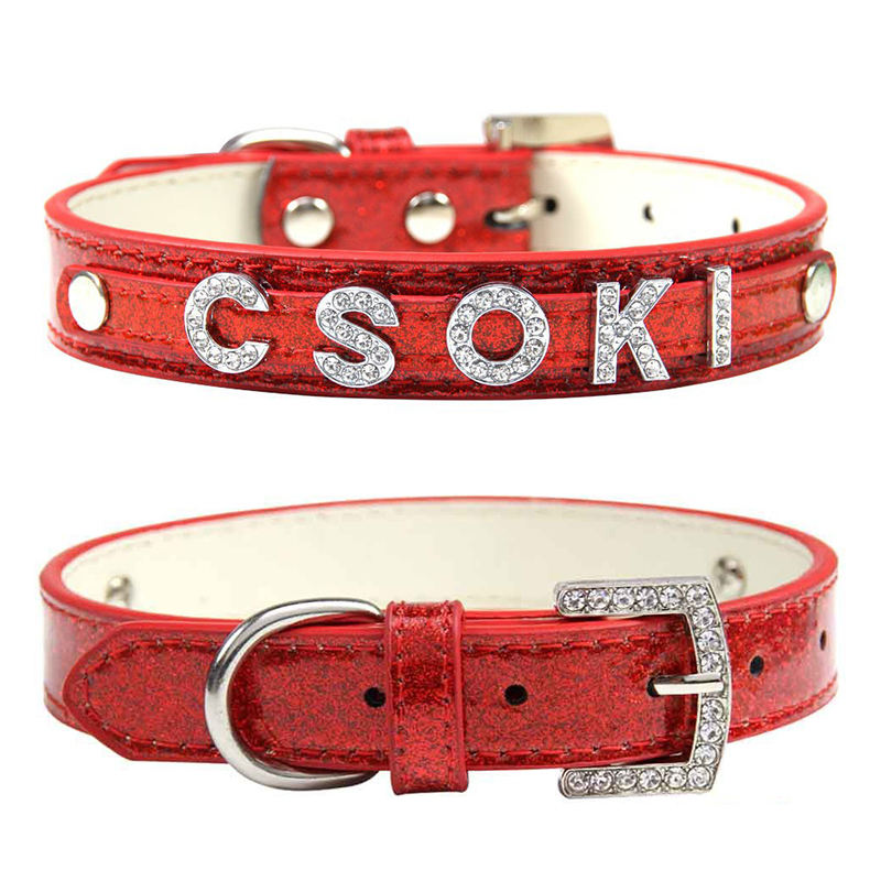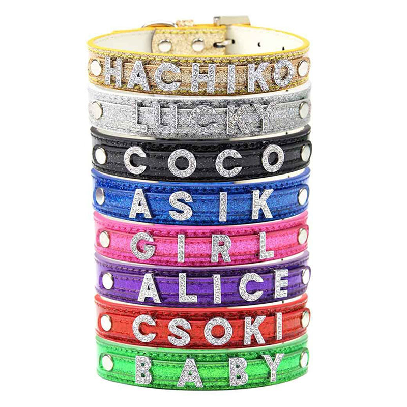 Collare per Cani di Lusso GorisPet Personalizzato con Nome, Lettere in Strass, Collare DIY Personalizzabile in PU per Cani e Gatti, Brillante e Luccicante