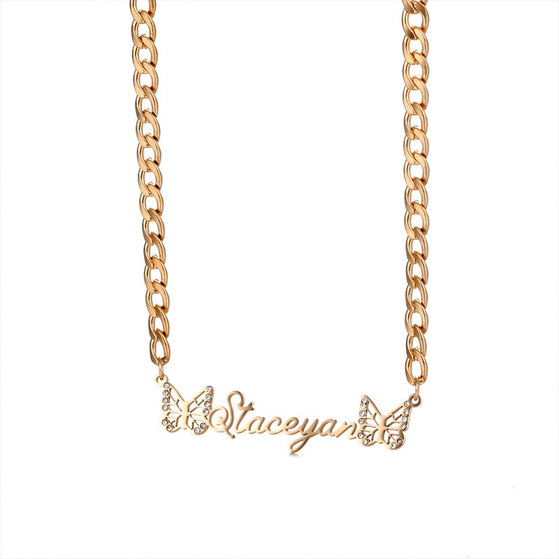 Collana con nome personalizzato con corona personalizzata da donna con targhetta gioielli 18K oro acciaio inossidabile lettere iniziali collane cubane