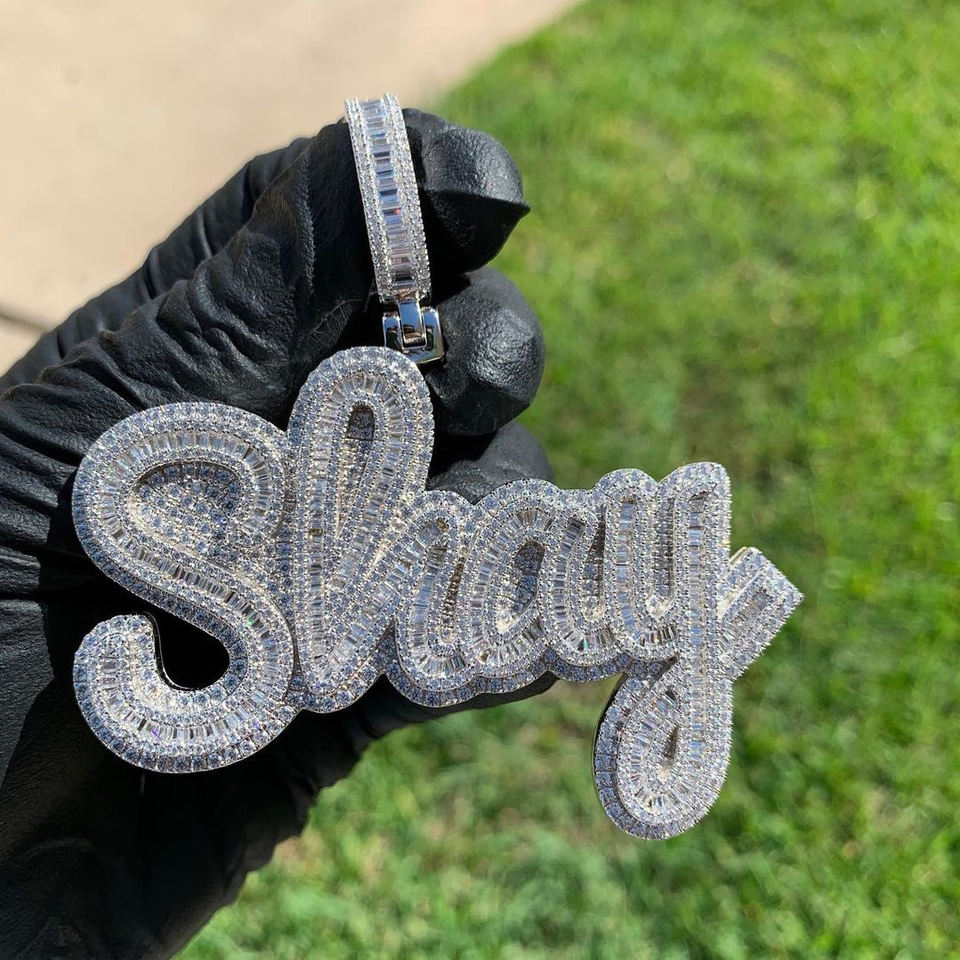 Nome personalizzato Piatto Collana Della Catena Del Pendente VVS Moissanite Del Diamante Cubano Gioielli Personalizzati Nome Collana Personalizzato con il Nome