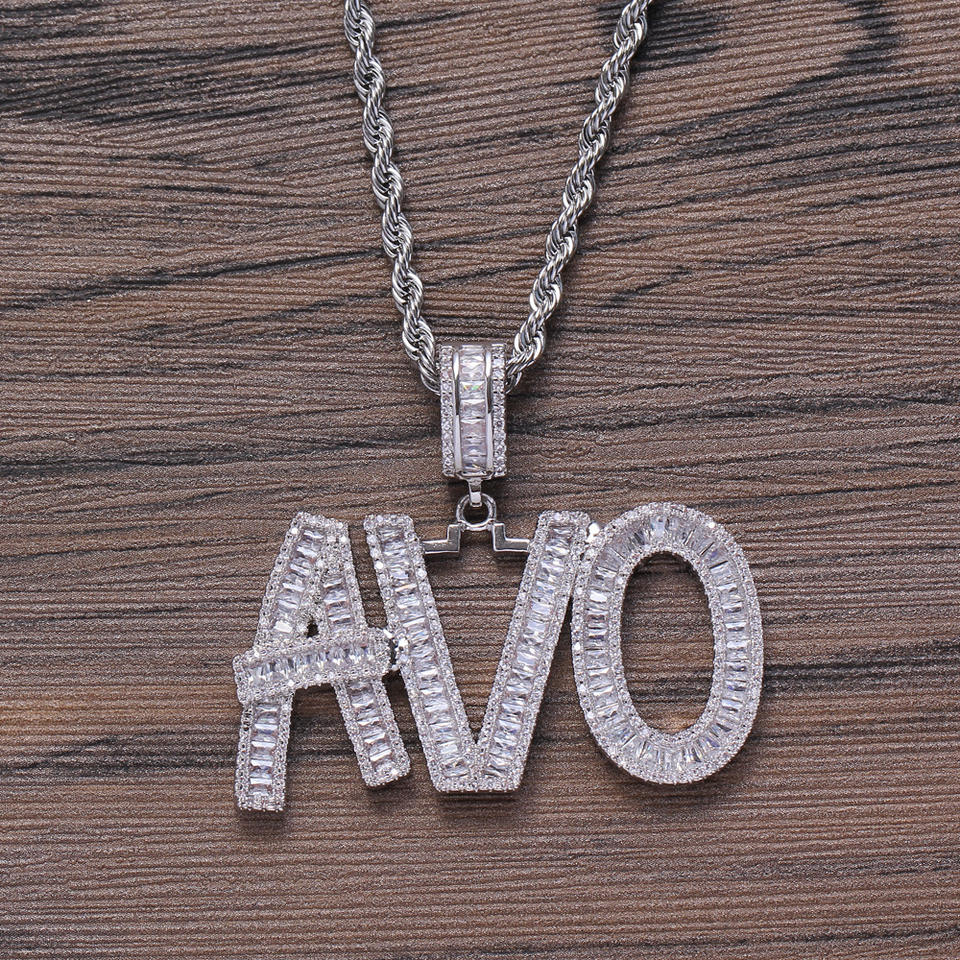 Custom Name and Number Baguette Pendant with Gold Plating Men's Hip Hop Rock Jewelry Necklace Chain Zirconia Charm