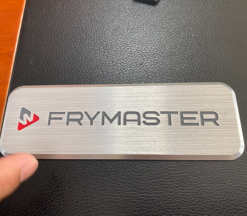Targhetta Personalizzata con Logo Inciso, in Metallo Spazzolato, Alluminio Anodizzato con Bordi Tagliati CNC Lucidi