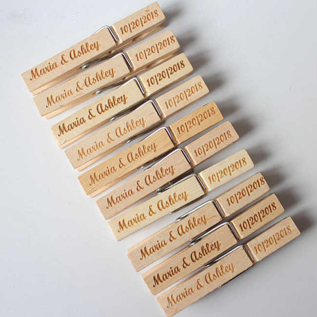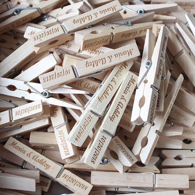 Custom Natural Laser Engraved Wooden Pegs for Photo Clothes Hanging