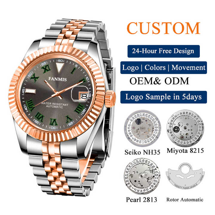 Orologio Personalizzato per Coppie, Argento-Rosa, Movimento NH35/Miyota 8215, Vetro Zaffiro, Impermeabile 100m, Orologi Meccanici
