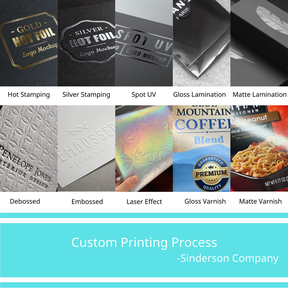 Lavorazione di stampa:Plastificazione opaca, Verniciatura, Stampaggio, Goffratura, Plastificazione lucida, Rivestimento UV, Svanimento, Foglia doro