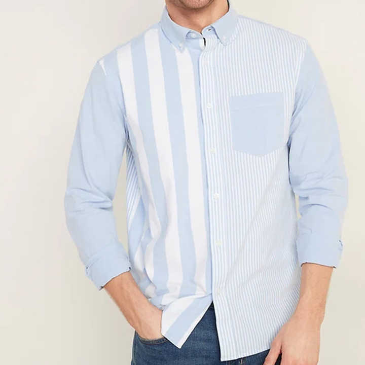 Camicia da uomo a maniche lunghe Casual blu chiaro di nuovo stile personalizzato camicie antirughe in cotone Oxford a blocchi colorati da uomo