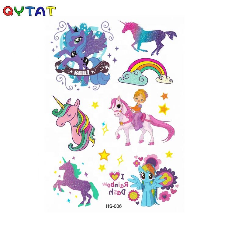 Tatuaggi Temporanei Personalizzati Non Tossici con Trasferimento ad Acqua, Disegni di Unicorni Brillanti con Glitter per Bambini e Ragazzi