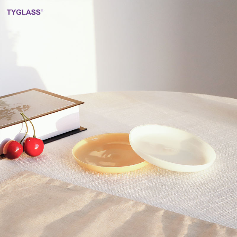 Piatto in Vetro Borosilicato Opaco Nordico Moderno Personalizzato, Ecologico, Resistente al Calore, Adatto per Microonde e Lavastoviglie, Regalo Dorato