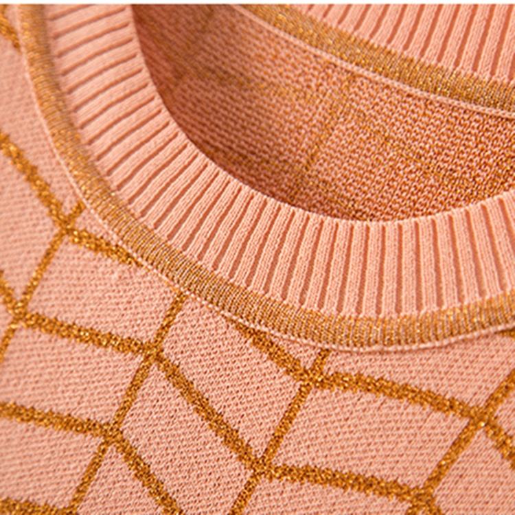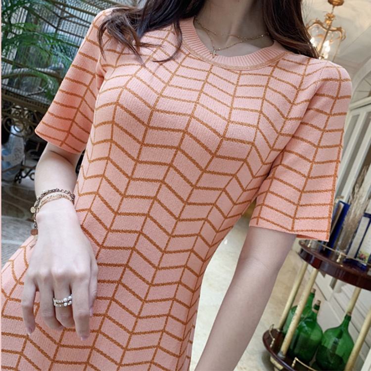 Abiti lunghi a quadri lisci a maniche corte su misura con scollo a maglia stile estivo abito maglione lavorato a maglia Casual da donna