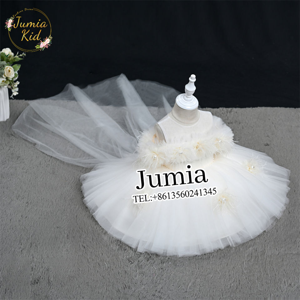 Abito da principessa bianco personalizzato ODM da ragazza con fiocco a coda di perla estivo fiore da sposa con decorazione a balze