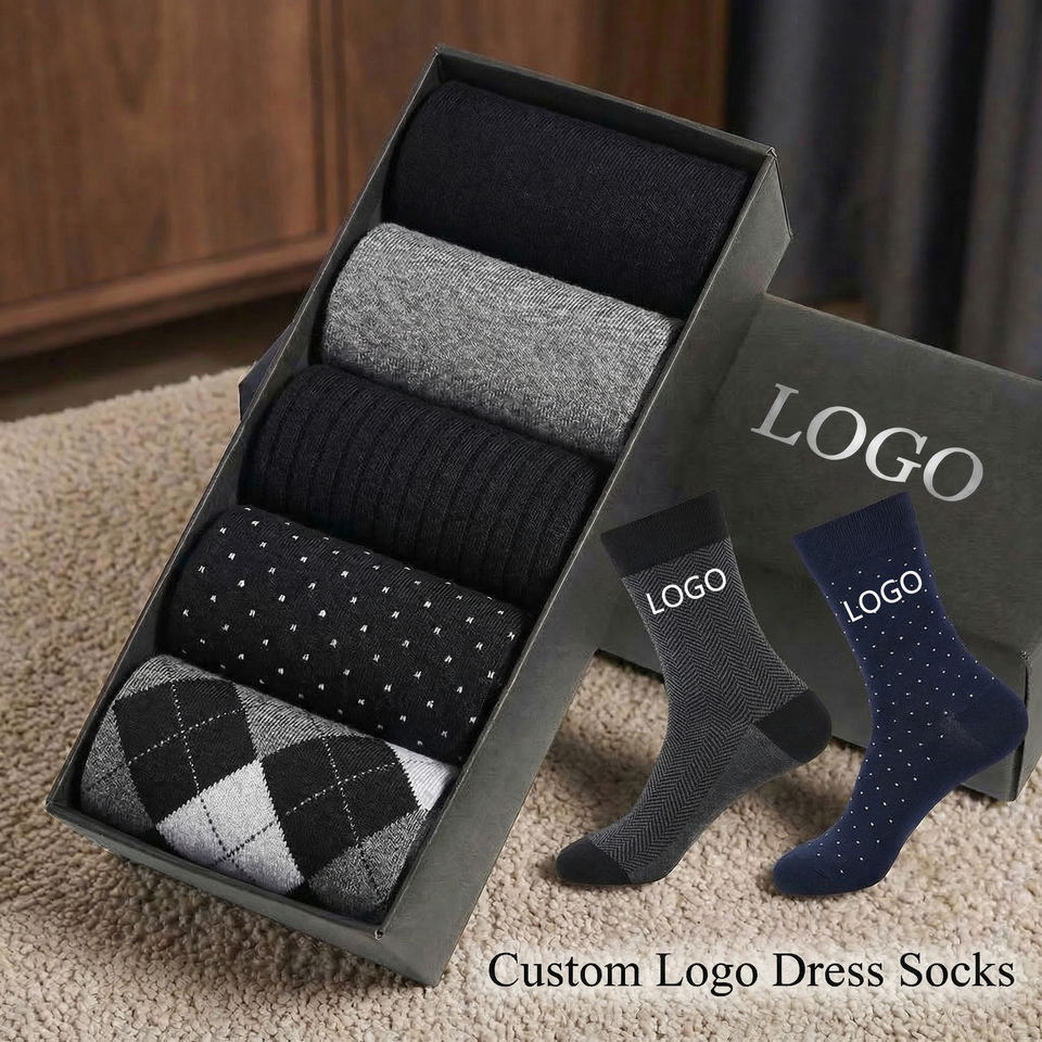 Calzini da Ufficio Classici Senza Cuciture in Cotone Antibatterico Personalizzati OEM, Calzini Eleganti Neri da Uomo con Logo