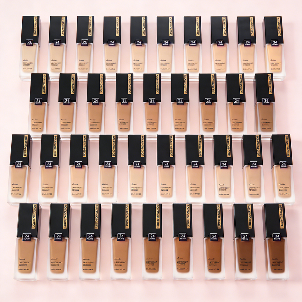 Fondotinta Liquido Personalizzabile OEM con 50 Colori, SPF, Vegano, Impermeabile, Formula Correttore, per Etichetta Privata, Ideale per Pelli Scure