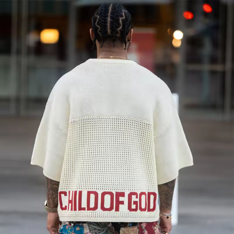 Logo personalizzato OEM ODM Design lettera Jacquard maglione a manica corta maglia da calcio maglia uncinetto maglia maglia da uomo