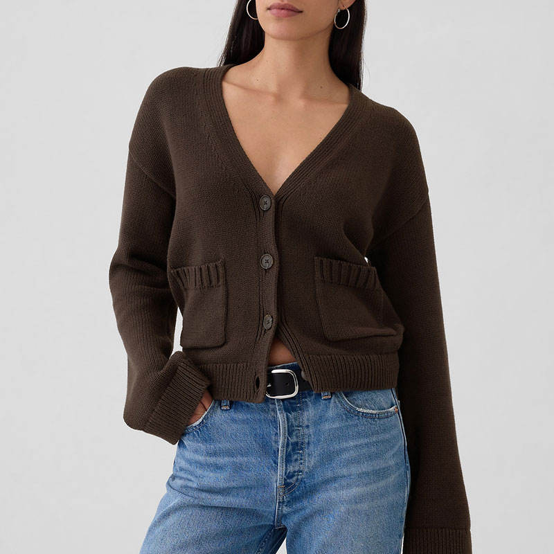 Maglioni personalizzati OEM ODM da donna Cardigan maglione da donna con scollo a V marrone maglia invernale