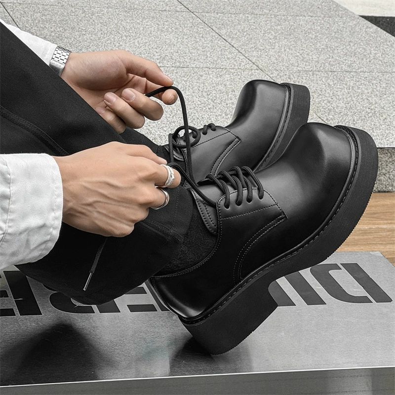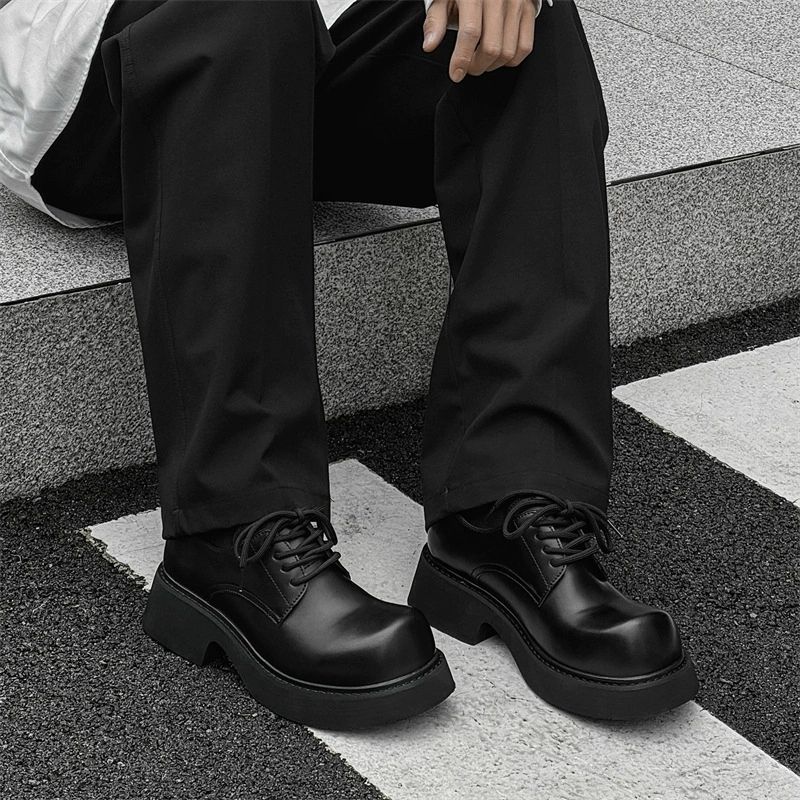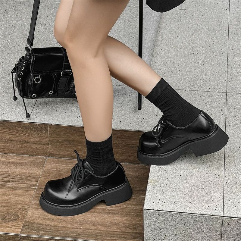 Custom OEM PU Leather Unisex Thick Sole Derby Loafers Size 35-48 Big Toe Lace up Platform Casual Shoes Women Men Loafers