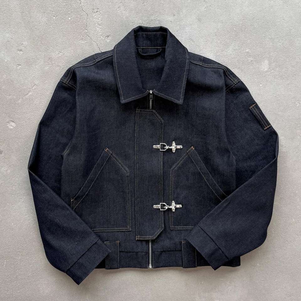 Custom OEM Service Streetwear Fashion Vintage Acid Washed OverSized Canvas Jacket Zip up Belt Heavy Denim Work Jacket Men