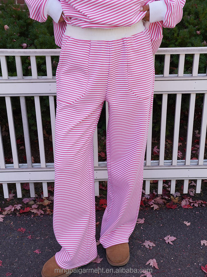 Pantaloni Casual Estivi da Donna Taglie Forti Personalizzati OEM, Set Due Pezzi con Felpa e Pantaloni a Gamba Larga a Righe