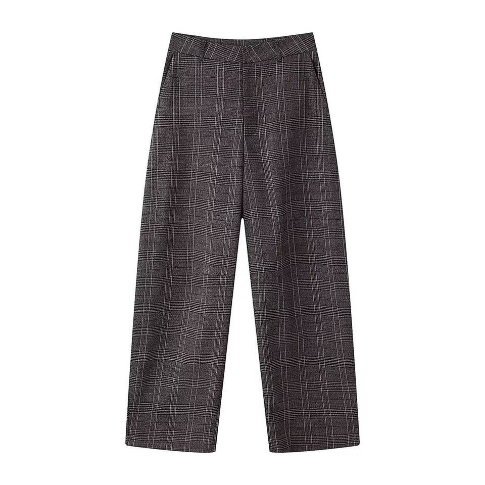 Custom OEM Women's Plaid Jacket & Trousers Set Fitted Waist, Peplum Hem Blazer with Straight-Leg Pants for Office Chic Lady Sets