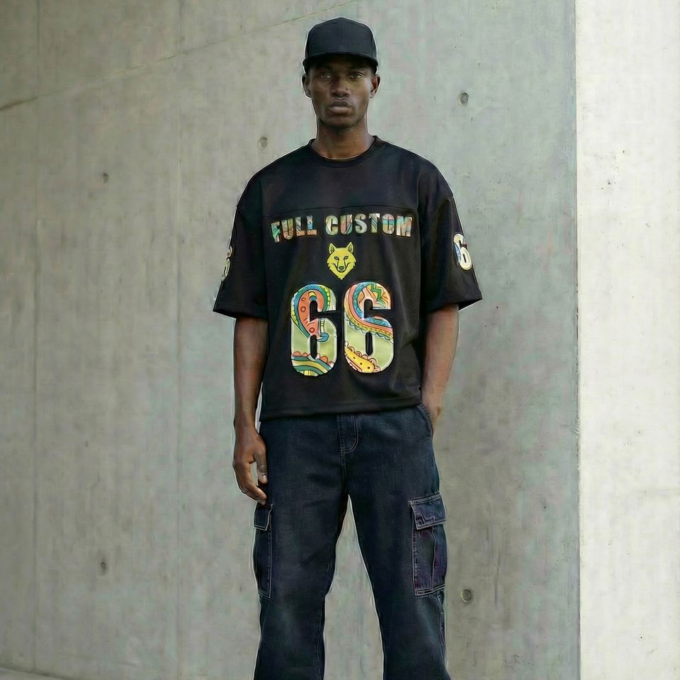 Custom Oversize Boxy Crop American Football Jersey Retro Street Fashion T-shirt Men Mesh Streetwear Soccer Rugby T Shirt Jersey