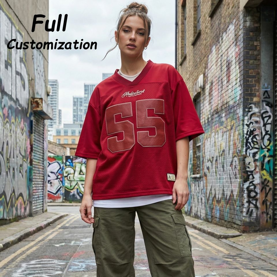 Custom Oversize Boxy Crop American Football Jersey Retro Street Fashion T-shirt Men Mesh Streetwear Soccer Rugby T Shirts