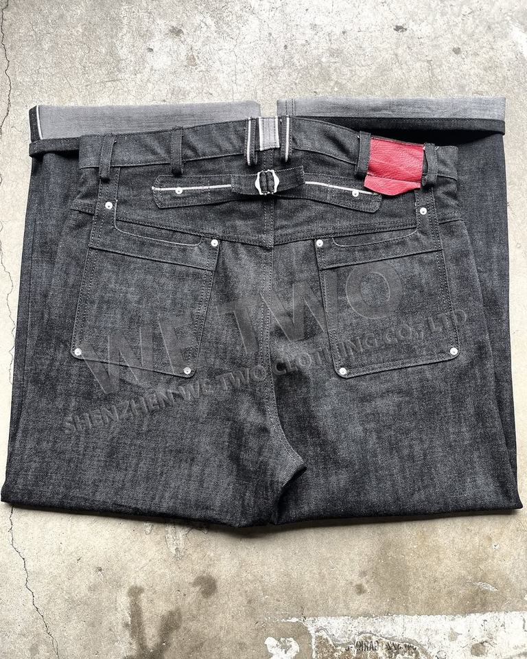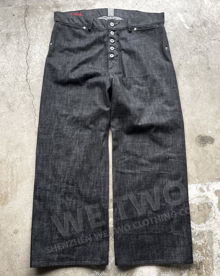 Custom Oversized Salavge Fabric Straight Wide Leg Red Tornado Button Raw Japanese Selvedge Flared Denim Pant Baggy Men's Jeans