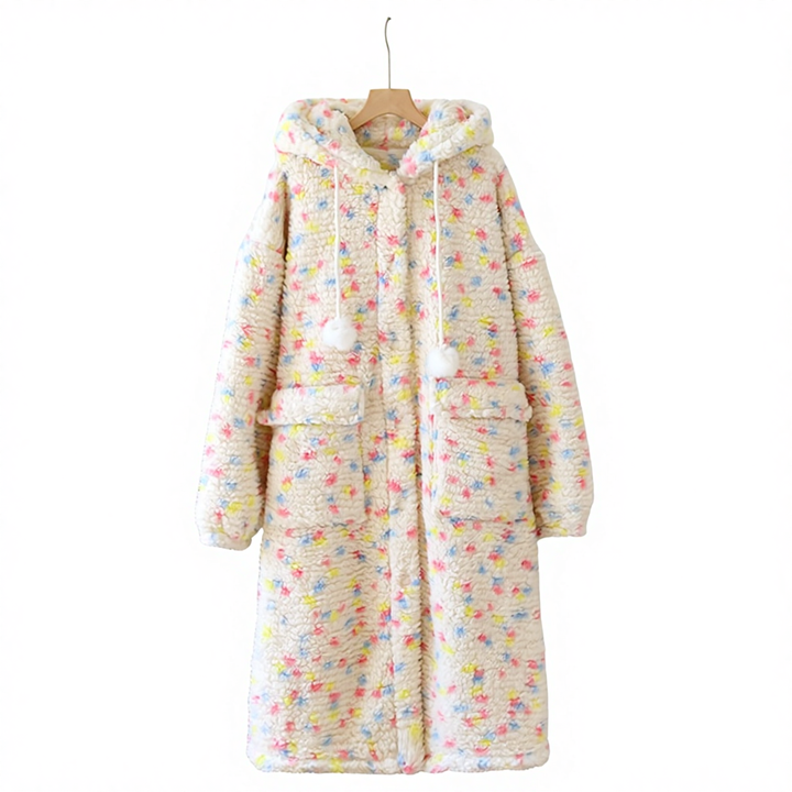 Custom PJ Sweet Color Polka-dot Coral Fleece-lined Hooded Thickened Women's Winter Pajamas Nightgown Large Size Home Clothes