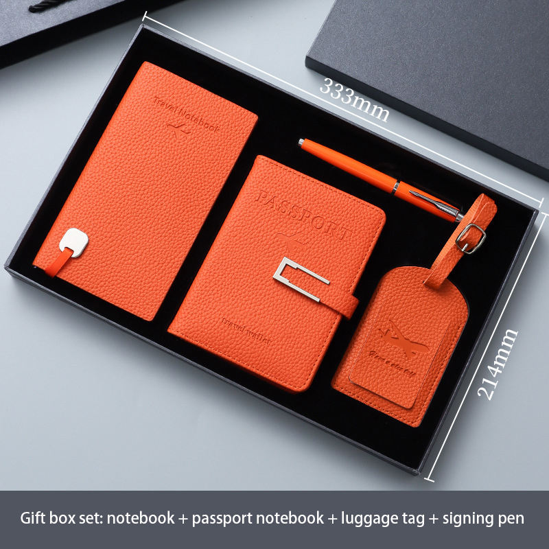 Porta passaporto, etichetta per valigia da viaggio, quaderno da viaggio, cofanetto regalo