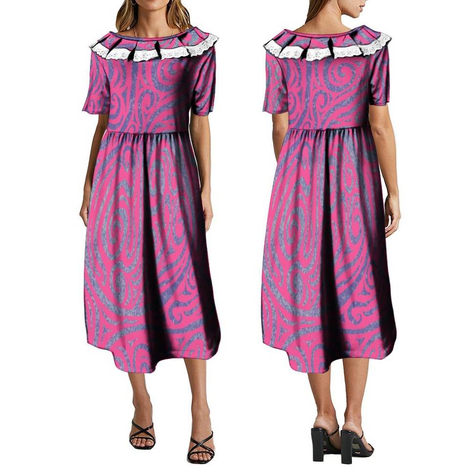 Abiti personalizzati in stile isola pacifica da donna eleganti con rifiniture in pizzo abito Midi abbigliamento polinesiano taglie forti abiti da donna